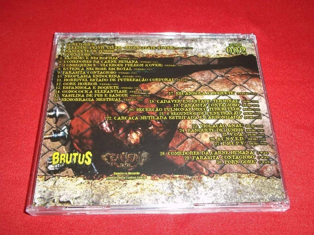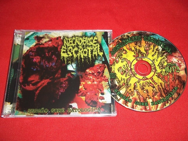 NECROBIOSE ESCROTAL: Sessão Gore Patologica - CD. Lançamento Cemitério Records 2015. Zumbi 002, Full Lenght com 30 faixas, incluindo algumas versões de demos e split. E também dois covers, Regurgitate e Ulcerous Phlegm, todas as faixas da banda são urradas e vomitadas em português. Um álbum que mostra de forma brutal todo o peso e agressividade do cenário da região nordeste do Brasil. (Necro Goregrind Canibal).
